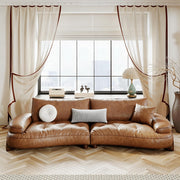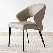 2PCS Modern Curved Upholstered Dining Chair Leather Accent Armchair with Black Metal Legs