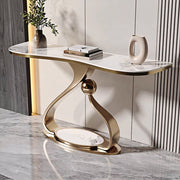 Modern Sintered Stone Entryway Console Table with Gold Metal Artistic Base