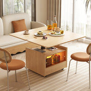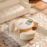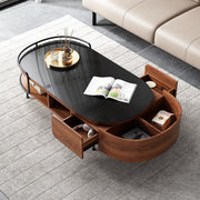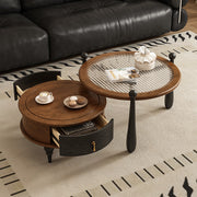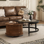 31.5" Round Nesting Coffee Table Set with Drawer Marble Texture Top Walnut Minimalist Storage Design