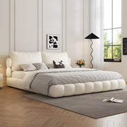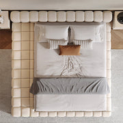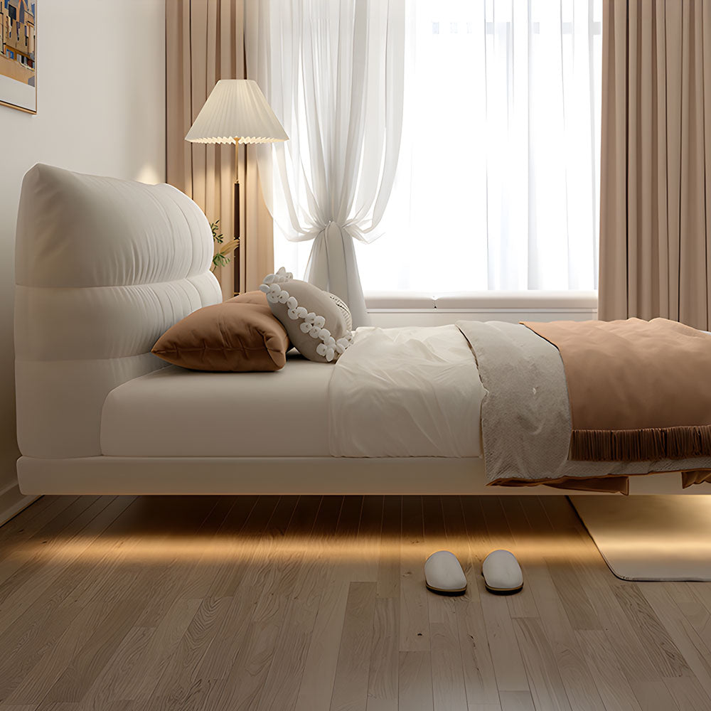 Modern Minimalist Modular Bed with Soft Cushioned Edges Ultra-Fiber Leather Steel-Wood Slatted Frame