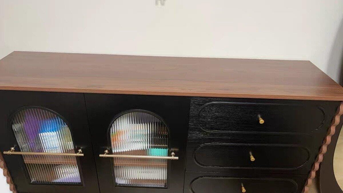 • Classic Vintage Design: A retro-inspired sideboard featuring arched cabinet doors, elegant contours, and rich color contrast for timeless appeal.