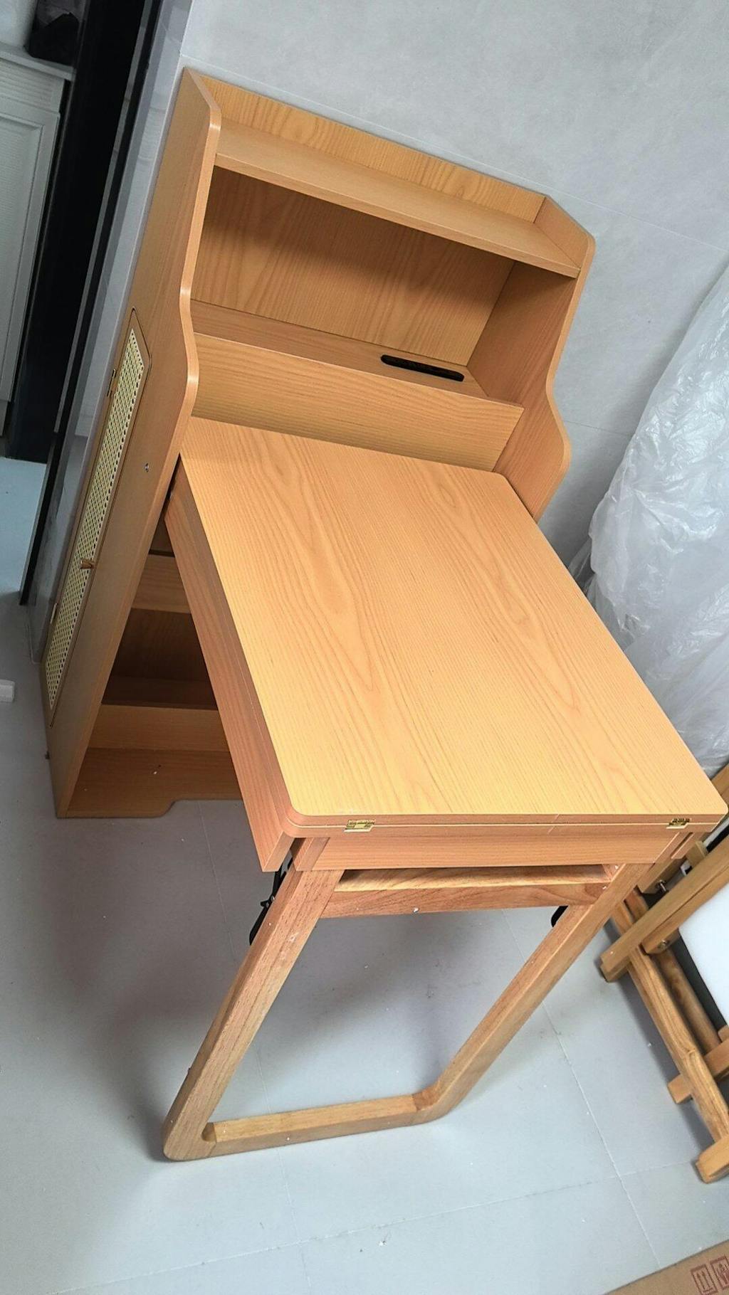 This integrated dining cabinet combines table, chairs, and storage in one design. Rattan side panels and rounded corners enhance the warm, natural aesthetic. The set includes multiple chairs and folds neatly away when not in use, perfect for small dining areas, kitchen corners, or cozy apartments.