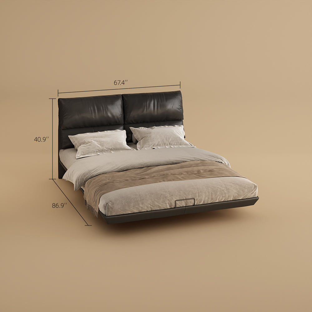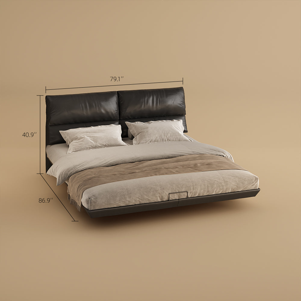 This modern floating platform bed features a sleek, low-profile design with an integrated LED lighting system that creates a striking floating visual effect. The recessed base and soft under-bed illumination add depth and atmosphere to the bedroom while enhancing the contemporary aesthetic. A generously padded upholstered headboard offers comfortable back support and a refined, minimalist look. Designed to combine style, comfort, and functionality, this bed is an ideal centerpiece for modern and luxury interiors.