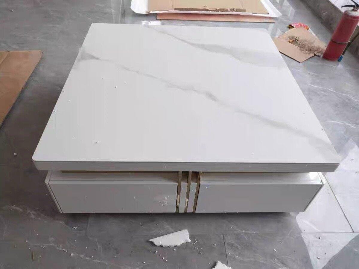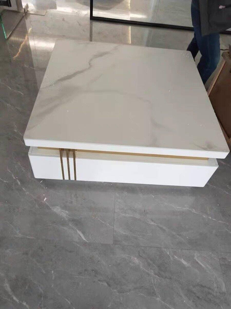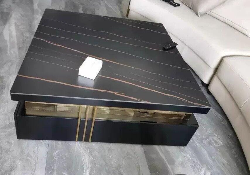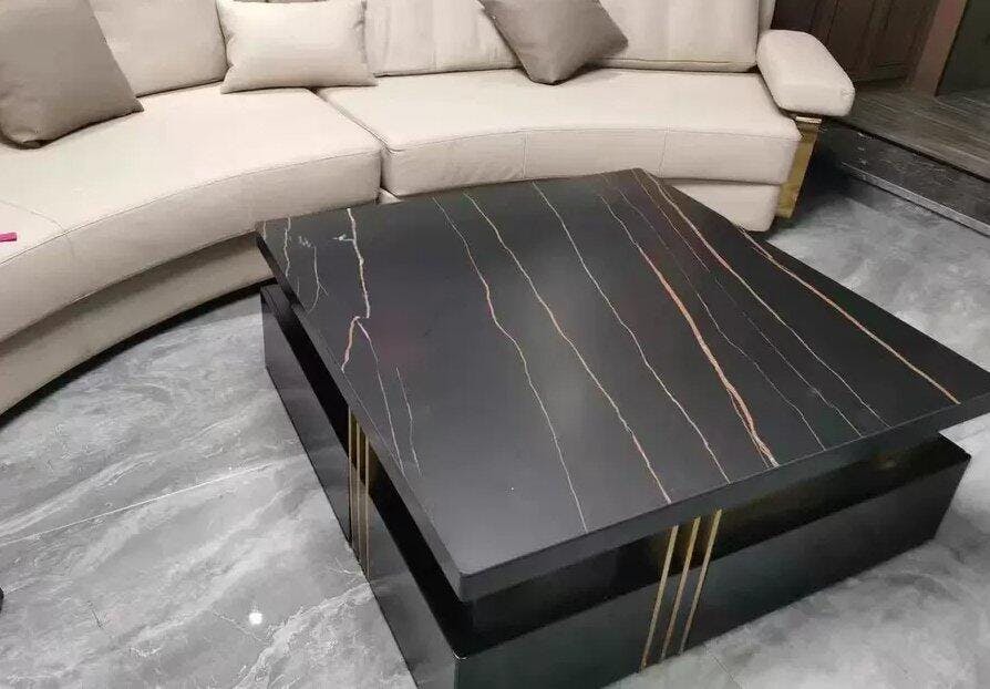 Elevate your living space with this Modern Square Sintered Stone Coffee Table, a statement piece that seamlessly merges luxury and functionality. The sintered stone tabletop offers exceptional durability — resistant to heat, scratches, and stains — while maintaining a refined marble-like texture. The contrasting gold accents add a touch of glamour to its modern, minimalist design. Perfect for contemporary interiors, this coffee table not only enhances your home’s aesthetic but also provides reliable, practical use for years to come.