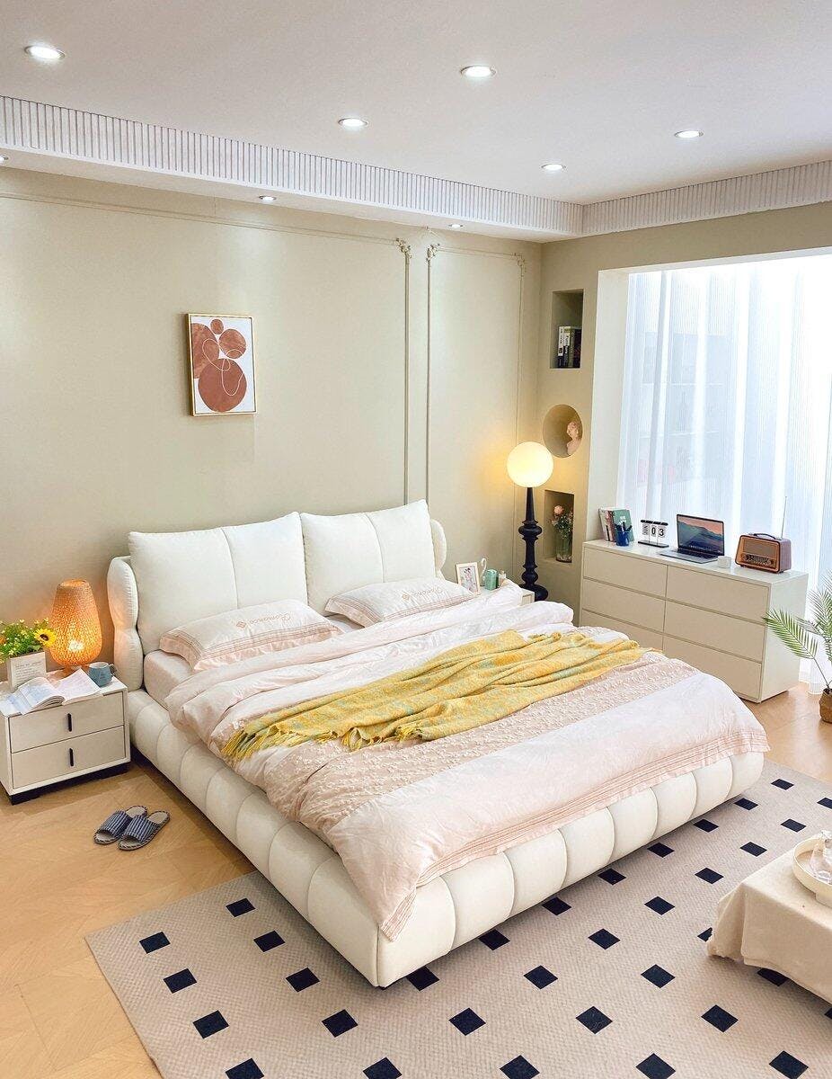 - Material: Ultra-fiber Leather, Paired with a Steel-wood Slatted Frame, and Backrest Filled with Silk Cotton Padding.