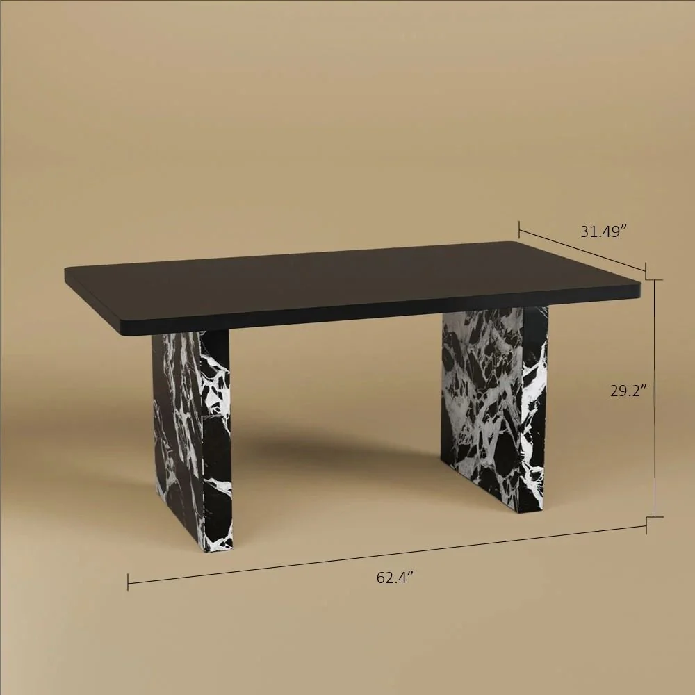 - Black tabletop with a minimalist silhouette and a marble-inspired base for added depth.