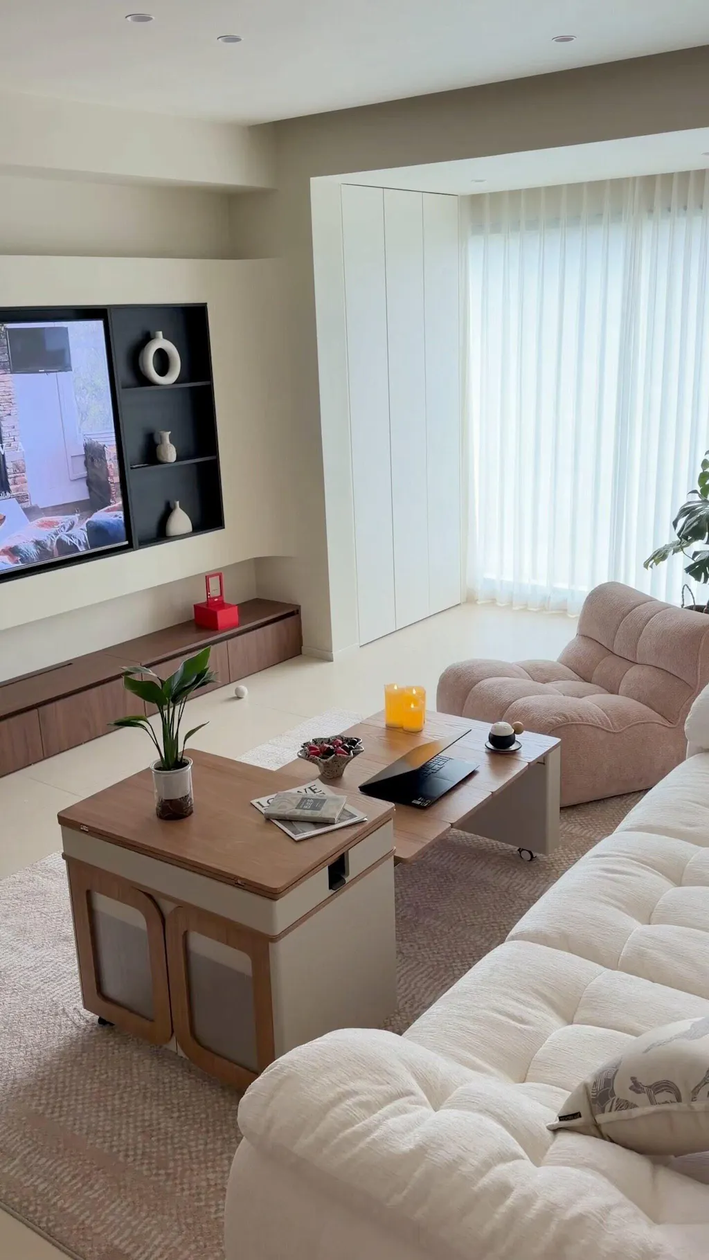 With built-in storage compartments and open side shelves, this table keeps your essentials organized and within reach. Whether you're enjoying coffee, working from the sofa, or hosting guests, this versatile coffee table adapts to your needs while maintaining a clean and modern aesthetic.