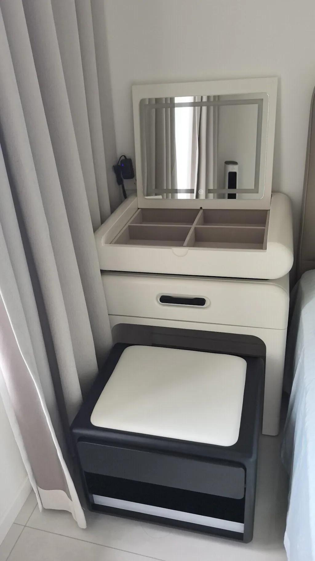 - Built-in LED Mirror with soft lighting for clear and comfortable makeup application