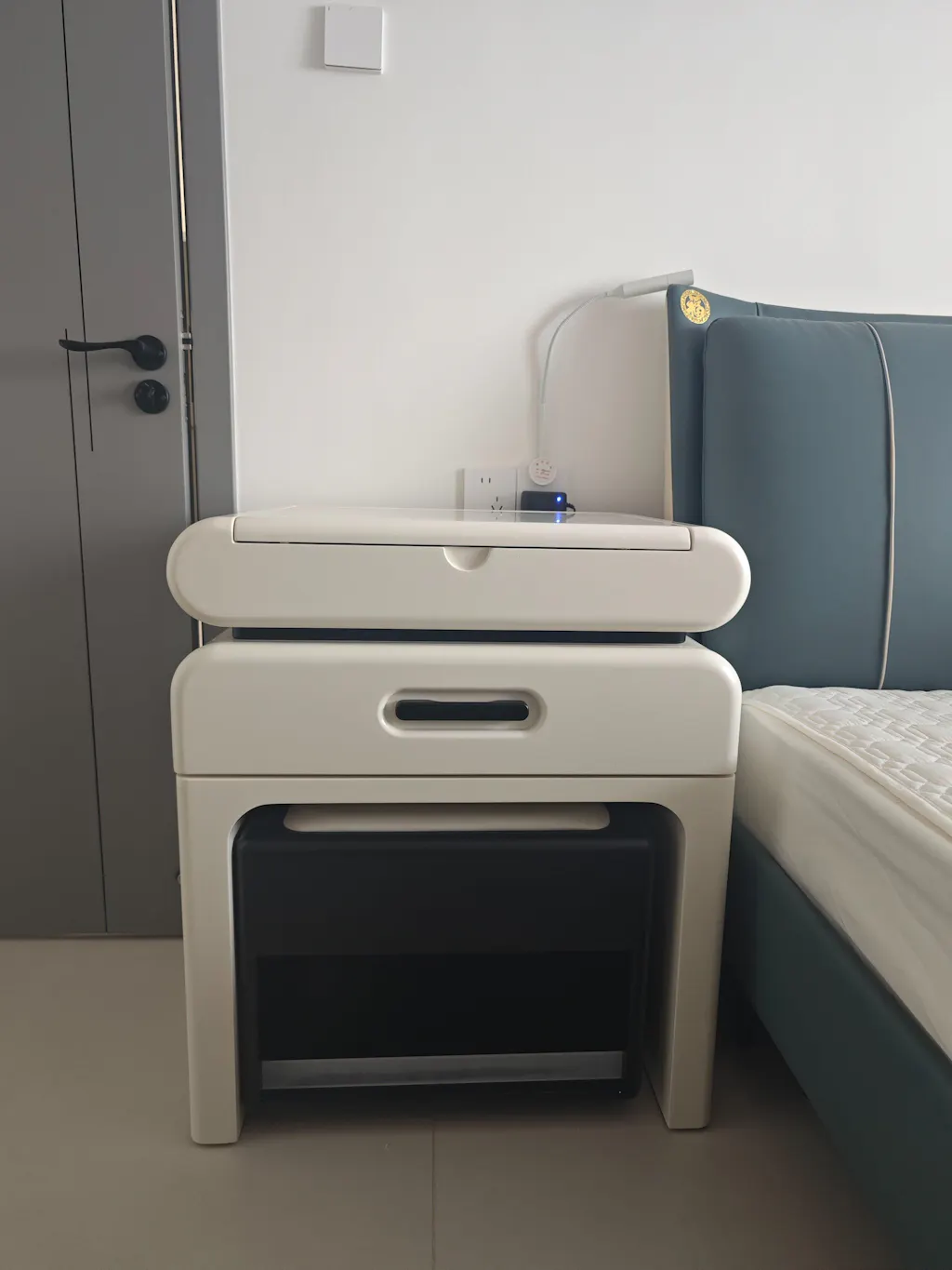 - Spacious Storage Drawer provides hidden space for daily essentials