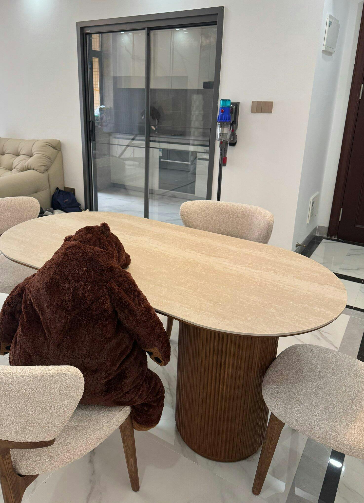 • Premium Travertine Tabletop: Smooth, scratch-resistant surface with elegant natural veining, bringing understated luxury to your dining space.