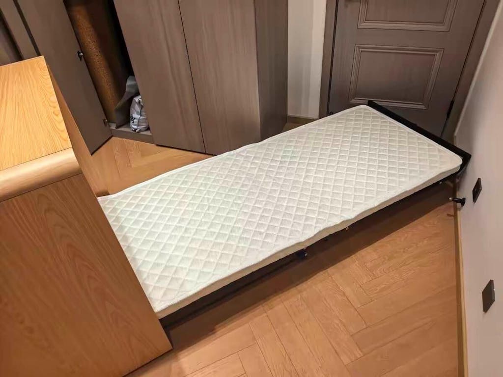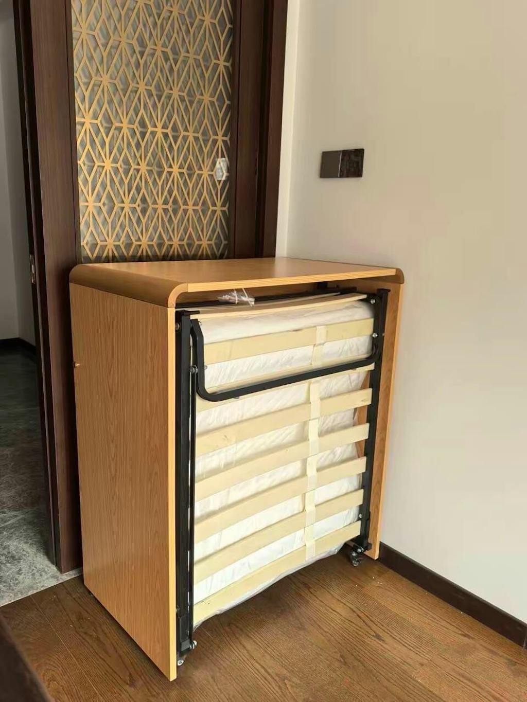 Love how compact this piece is. When it's folded, it just looks like a small cabinet and fits nicely in the corner of my room. The wood finish looks clean and modern, and it doesn’t take up much space. When needed, the bed pulls out smoothly and works great for guests. Really smart design for small apartments.