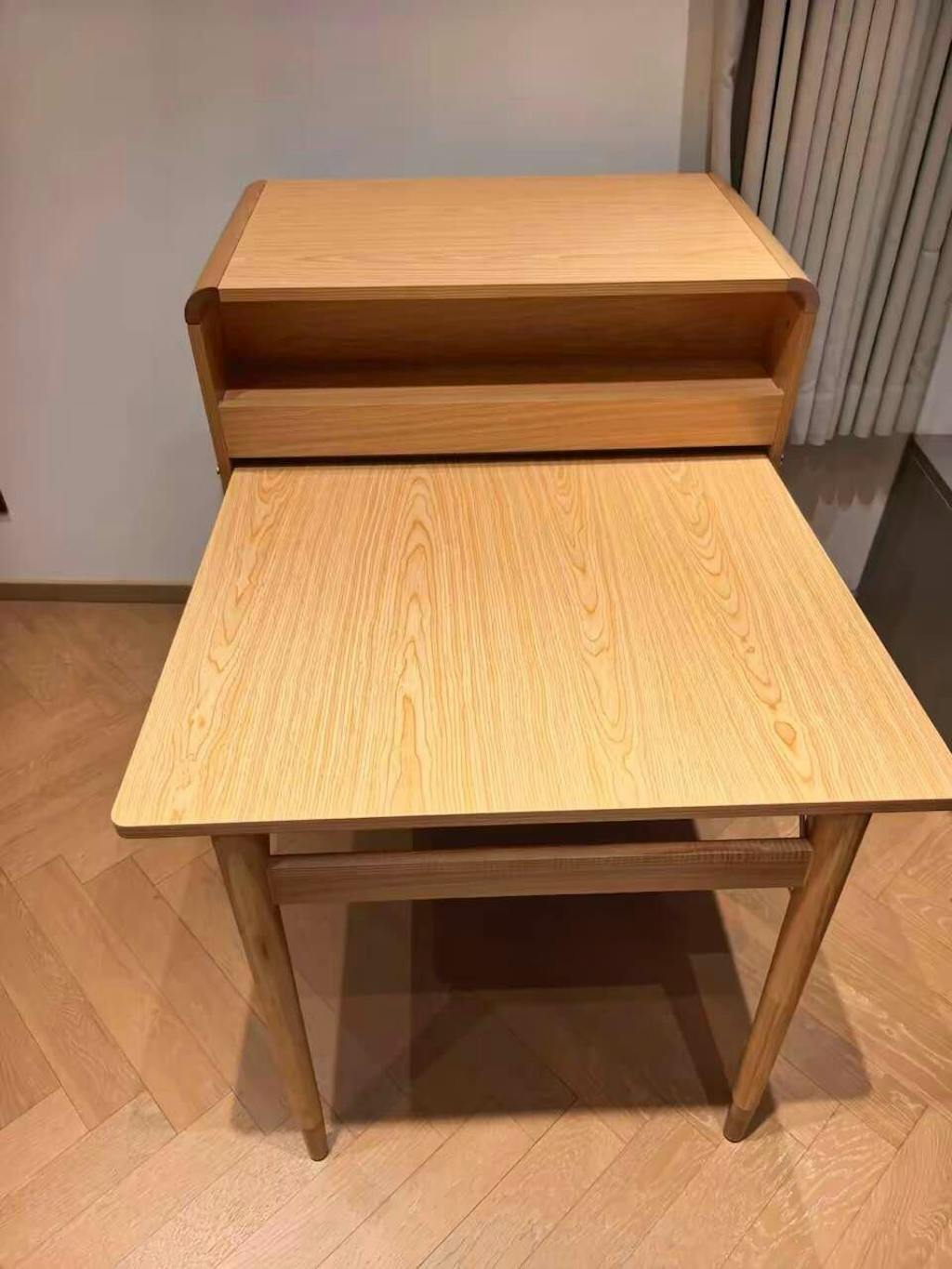 Really happy with this purchase. It looks like a normal small table when folded, but the bed pulls out easily when needed. Perfect for my small apartment and great for guests. The wood finish looks nice and the mattress is comfortable enough for a good night's sleep. Very practical space-saving design.